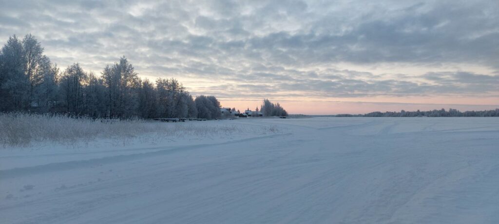 Лето на острове солнечное. Зима снежная, но умеренная: средняя температура около -10°C. Чистый воздух — особенно заметно, говорит Дима, после Череповца.