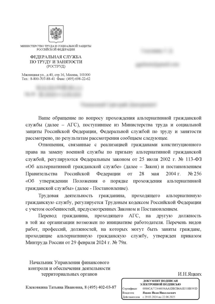 Сдаваться Руслан не стал и написал в Роструд, чтобы уже их сотрудники разрешили этот вопрос. Ответ** пришёл спустя несколько недель — перевод на другую должность внутри организации возможен по инициативе работодателя. Спустя 3 с половиной месяца службы Руслана перевели на должность, которая соответствует его уровню образования — оператор ЭВМ в отделе медицинской статистики.